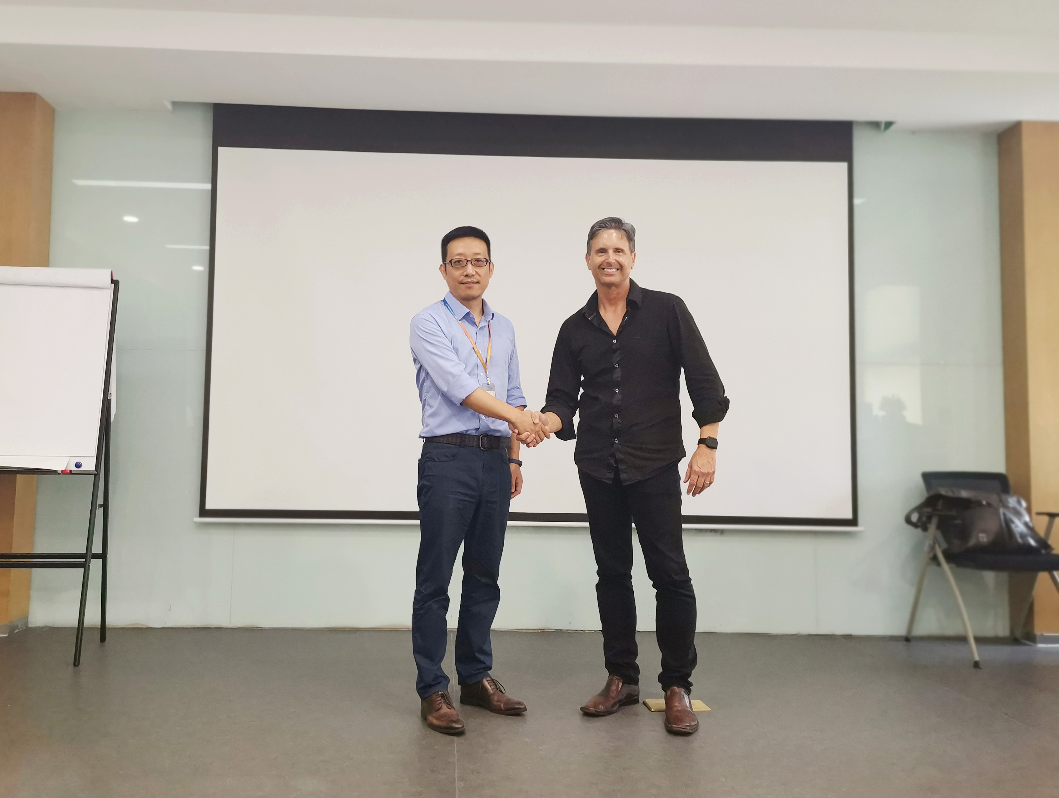 凌志軟件高級副總裁周穎與主任評估師John Hostetler合影