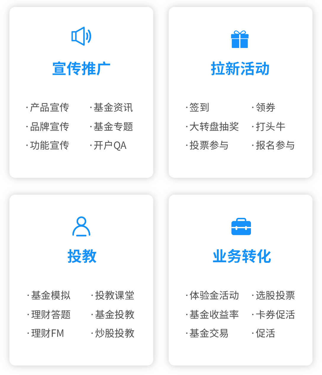 ·幫助客戶實現方案策劃、活動頁設計、運營實施、效果評估等全流程服務,落地線上自動化運營體系