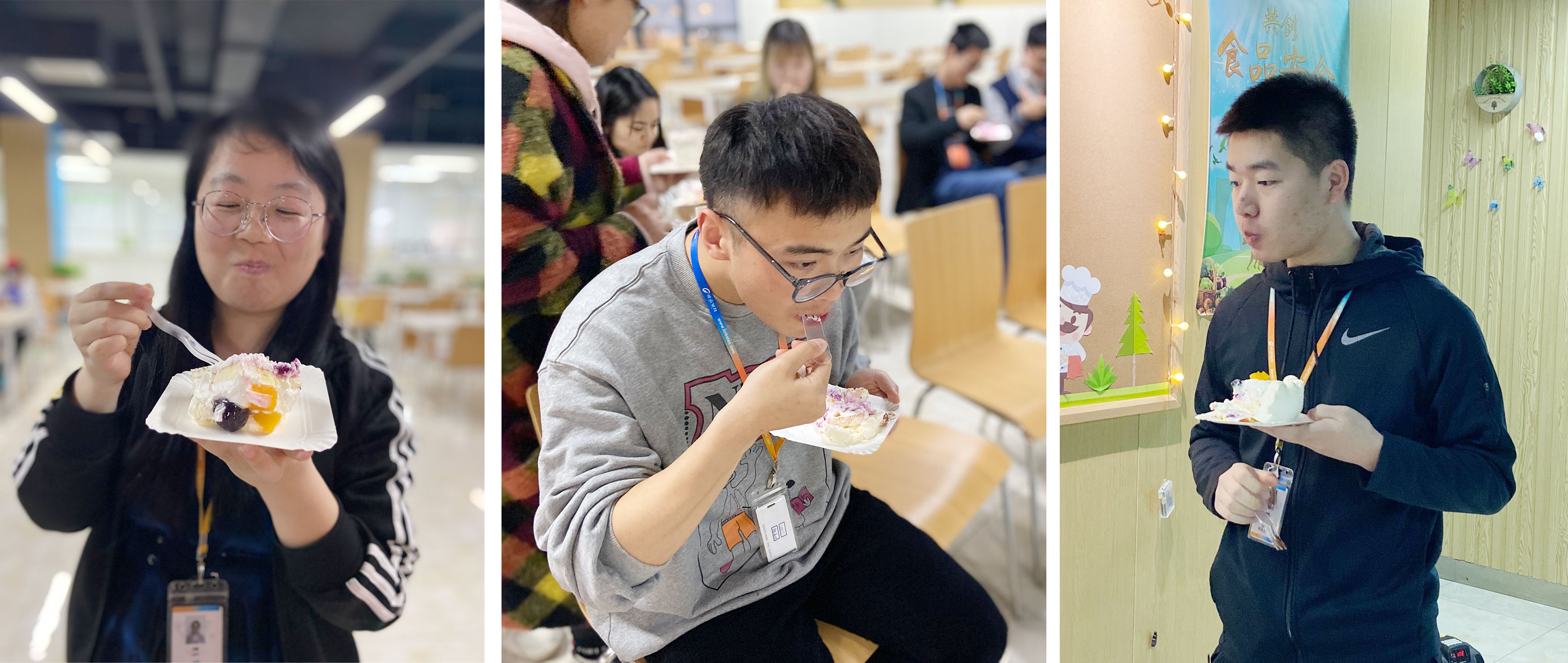 所有人品嘗著香甜可口的蛋糕,共享生日的喜悅!