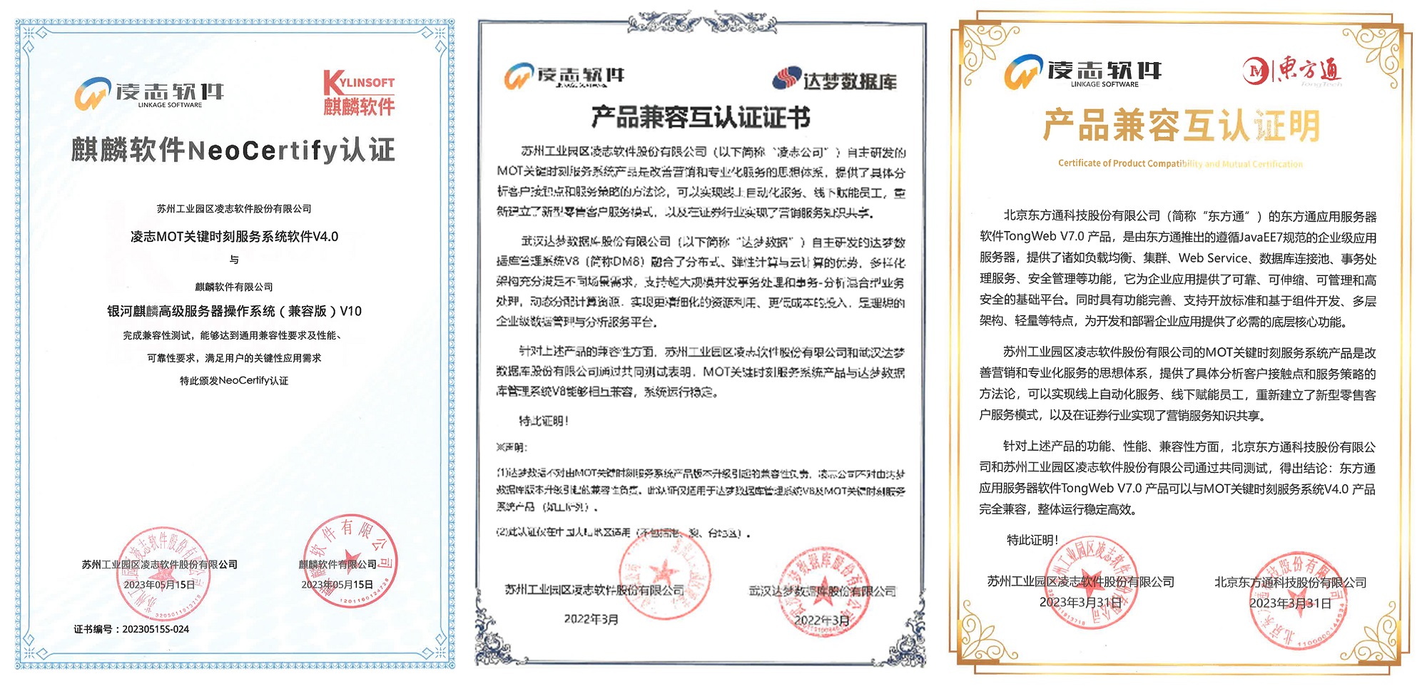 近期,凌志軟件拳頭產品“凌志MOT關鍵時刻服務系統”獲得麒麟軟件NeoCertify認證,這是繼該產品在達夢認證與東方通認證之后,完成的第三個國產化兼容性互認證。